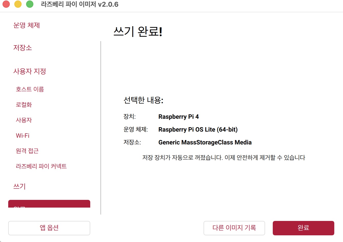 OS는 Lite 버전으로 선택했다. GUI 환경이 없는 대신 메모리 사용량이 낮은 장점이 있다.