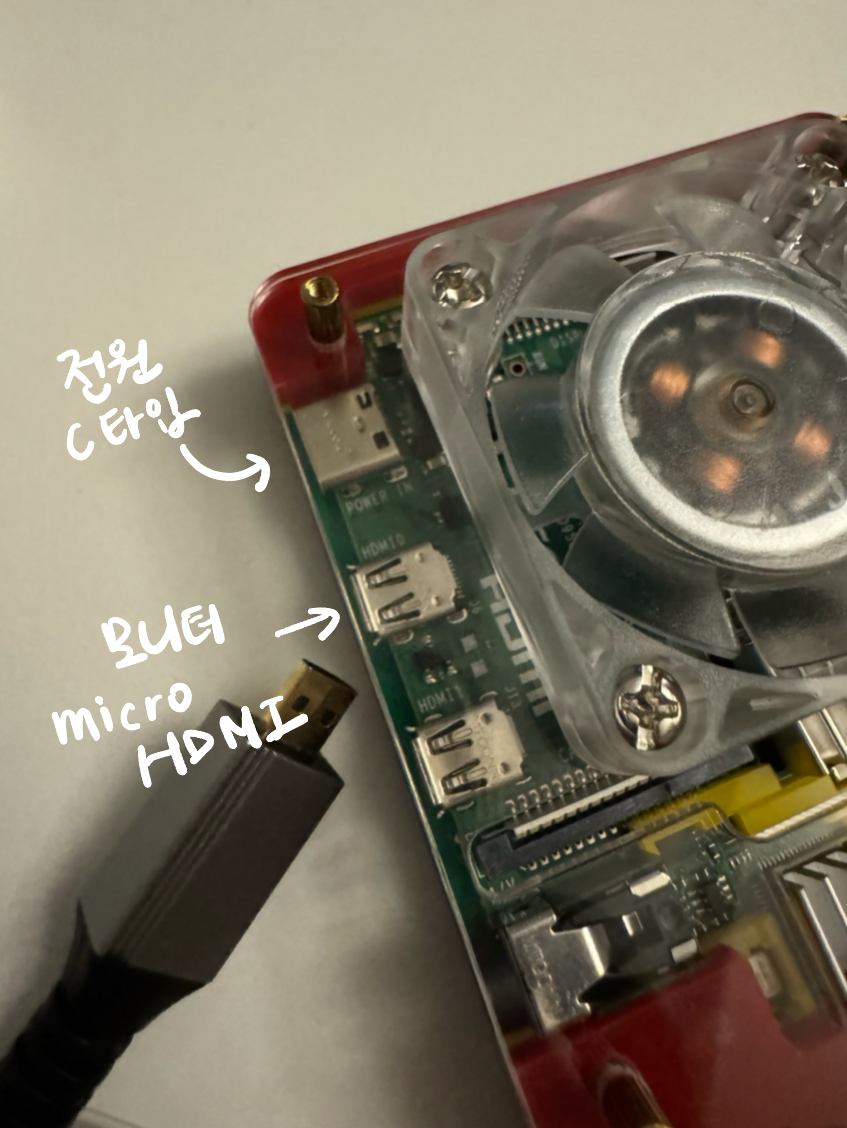 이미지에 보이는 대로 전원, 모니터, 키보드를 연결하면 된다.