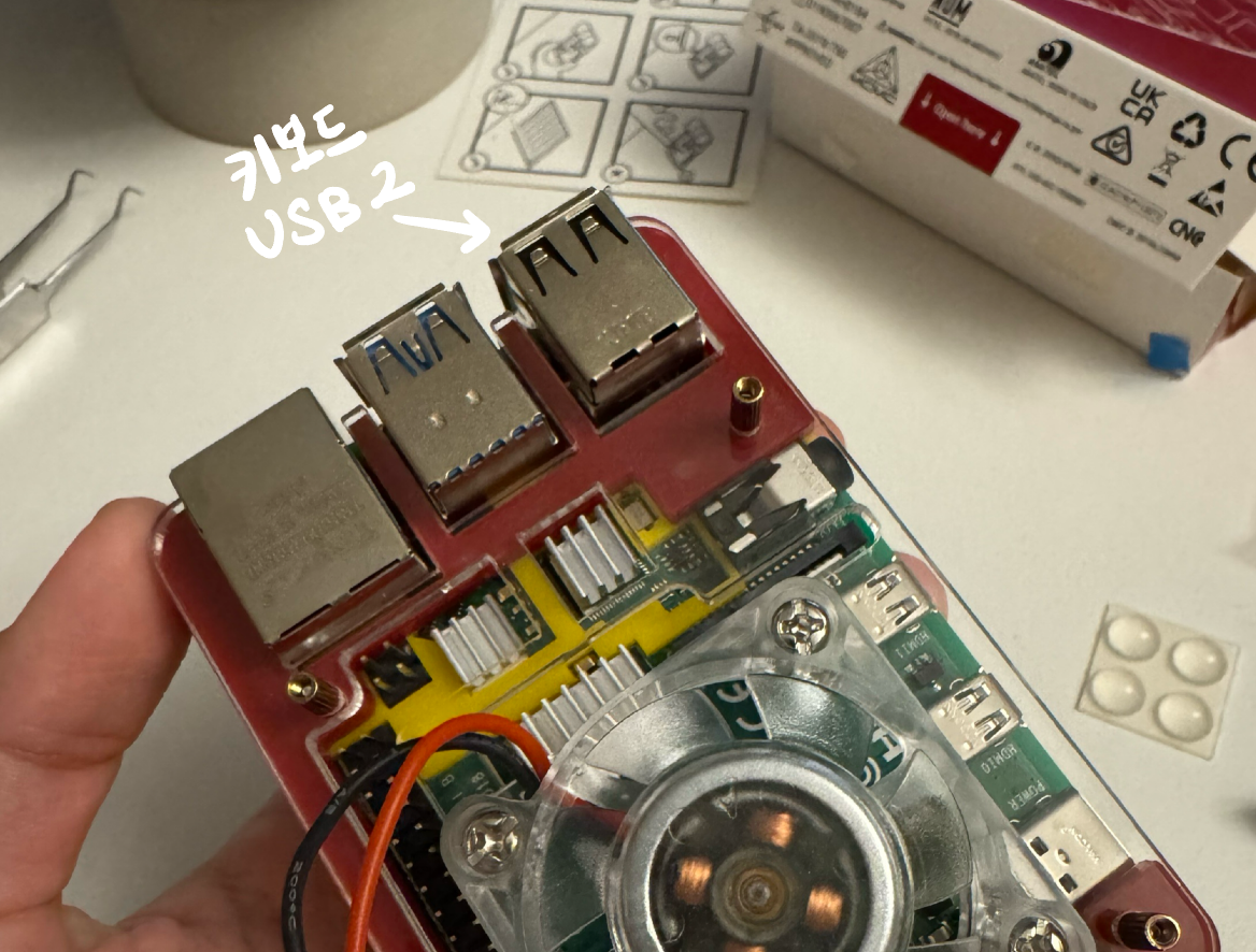노란색 판이 라즈베리파이 구조에 딱 맞게 나왔기 때문에, 방열판과 PoE HAT header 사이로 케이스가 잘 들어맞지 않는 문제가 있었다 (방열판을 살짝 위로 붙인 게 문제)